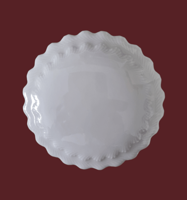 Das schlichte weiße Porzellan unterstreicht die feine Struktur des Deckels und passt zu verschiedenen Einrichtungsstilen.